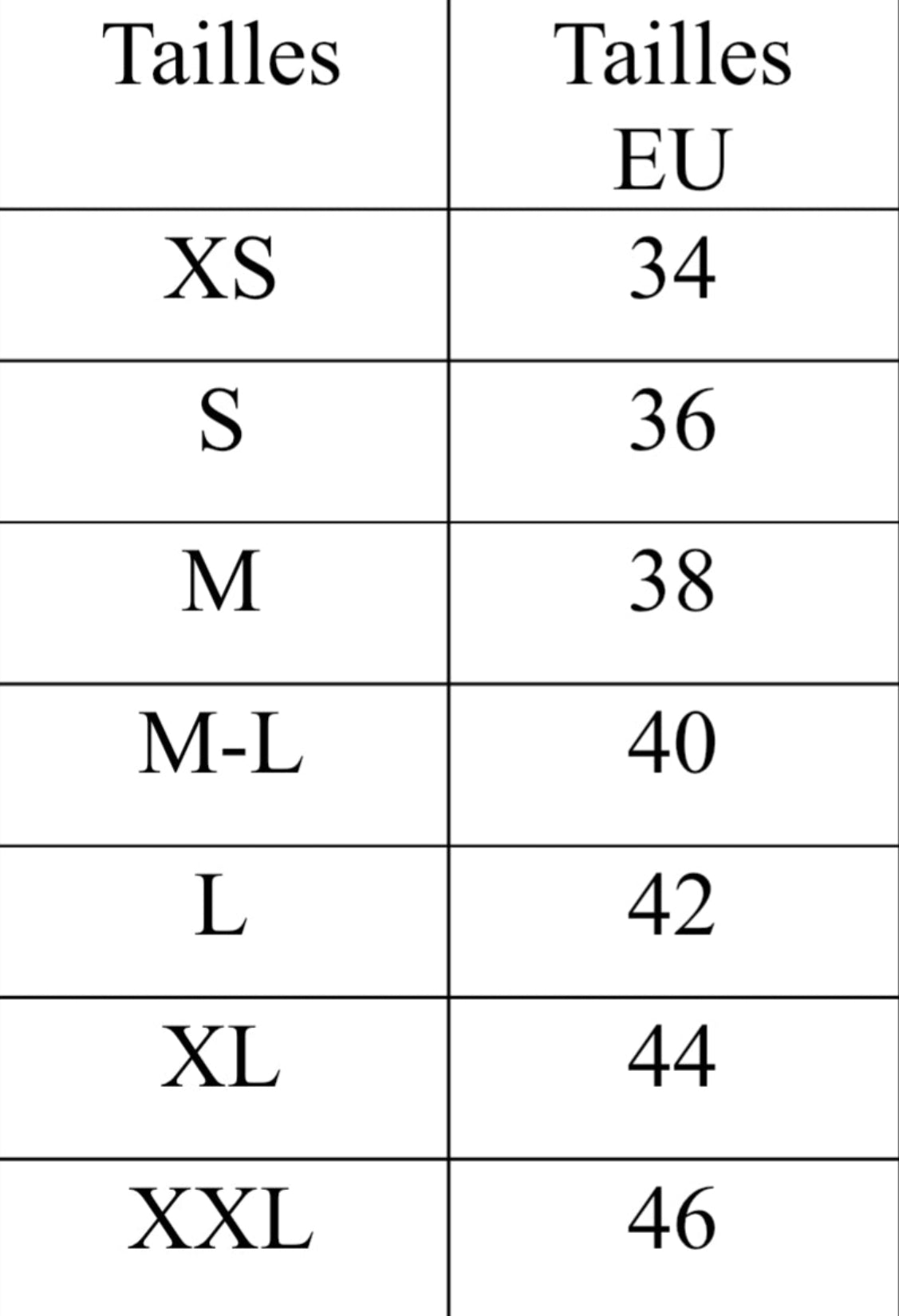 Ce BAYA simple est disponible de la taille XS à XXL (voir photo). Pour toutes autres tailles n'hésitez pas à nous contacter.